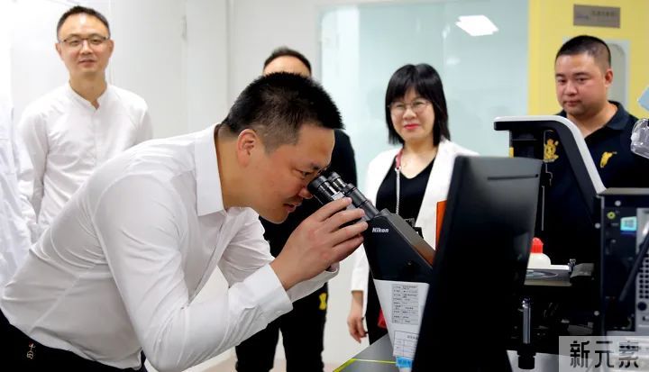 陈开国总经理用显微镜观察“濡白天使”微球