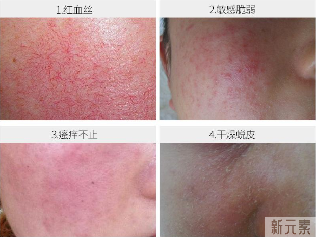 敏感肌人群的皮肤一般都很薄很脆弱, 在受到外界刺激时, 容易出现泛红、粗糙、瘙痒、疼痛、爆痘、红血丝的情况 ,特别是毛细血管扩张等症状,同时会有灼热感、刺痛感,对普通化妆品不耐受。